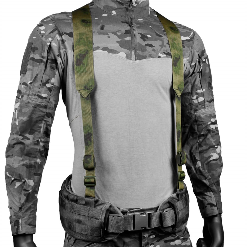 Лямки крепятся в четырёх точках (две спереди и две сзади) через полукольца или ячейки MOLLE на вашем боевом поясе, гарантируя надёжную фиксацию. Эластичные вставки в области спины обеспечивают свободу движений и предотвращают смещение пояса при наклонах или смене положения тела, сохраняя снаряжение на своём месте. Лямки подходят для операторов разного роста (от 150 до 210 см).