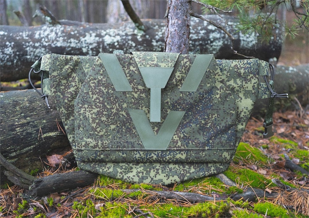 Двухсекционная сидушка для размещения одного или двух баллистических пакетов, защищающих поясницу, таз и ноги от осколков. Сидушка может быть закреплена тремя способами: на MOLLE-платформу бронежилета или пояса, а также как классическая сидушка с помощью поясной стропы. В этом случае её можно будет повернуть вперёд и использовать как малый коврик для засады либо подложить под спину для короткого отдыха.