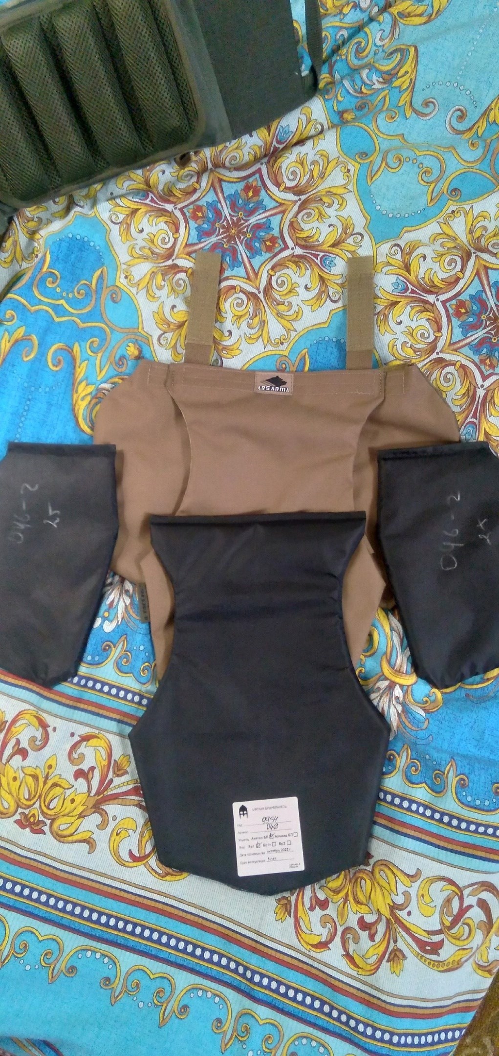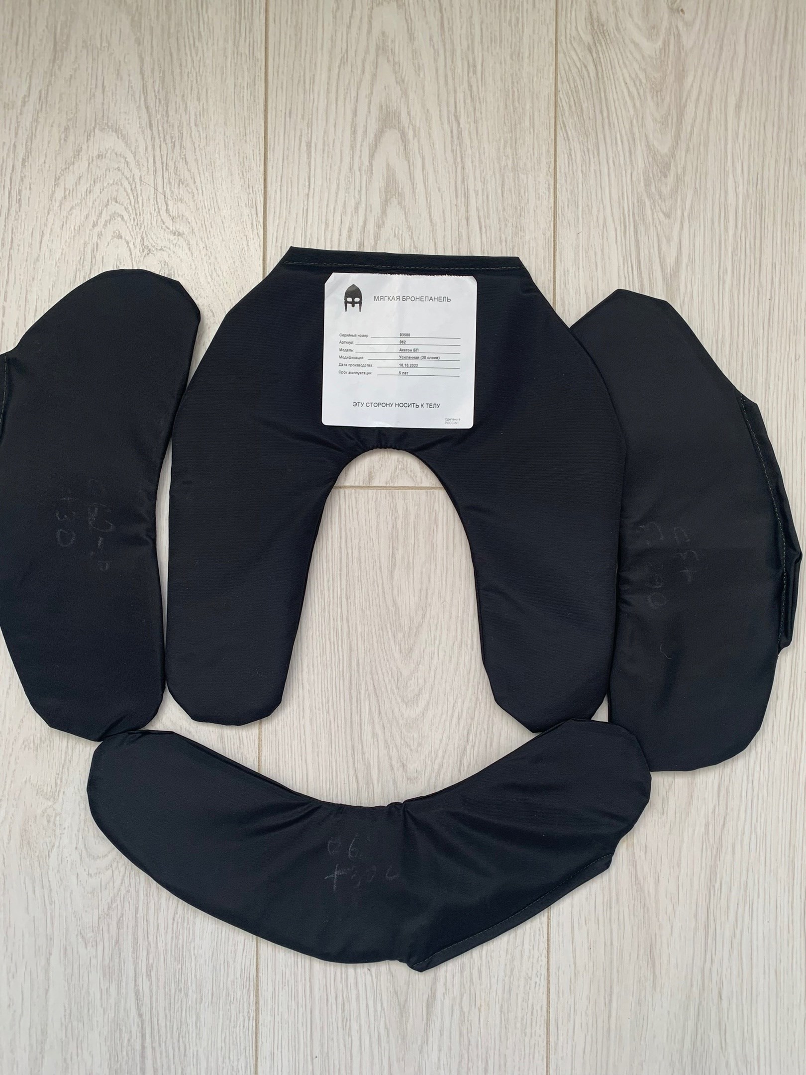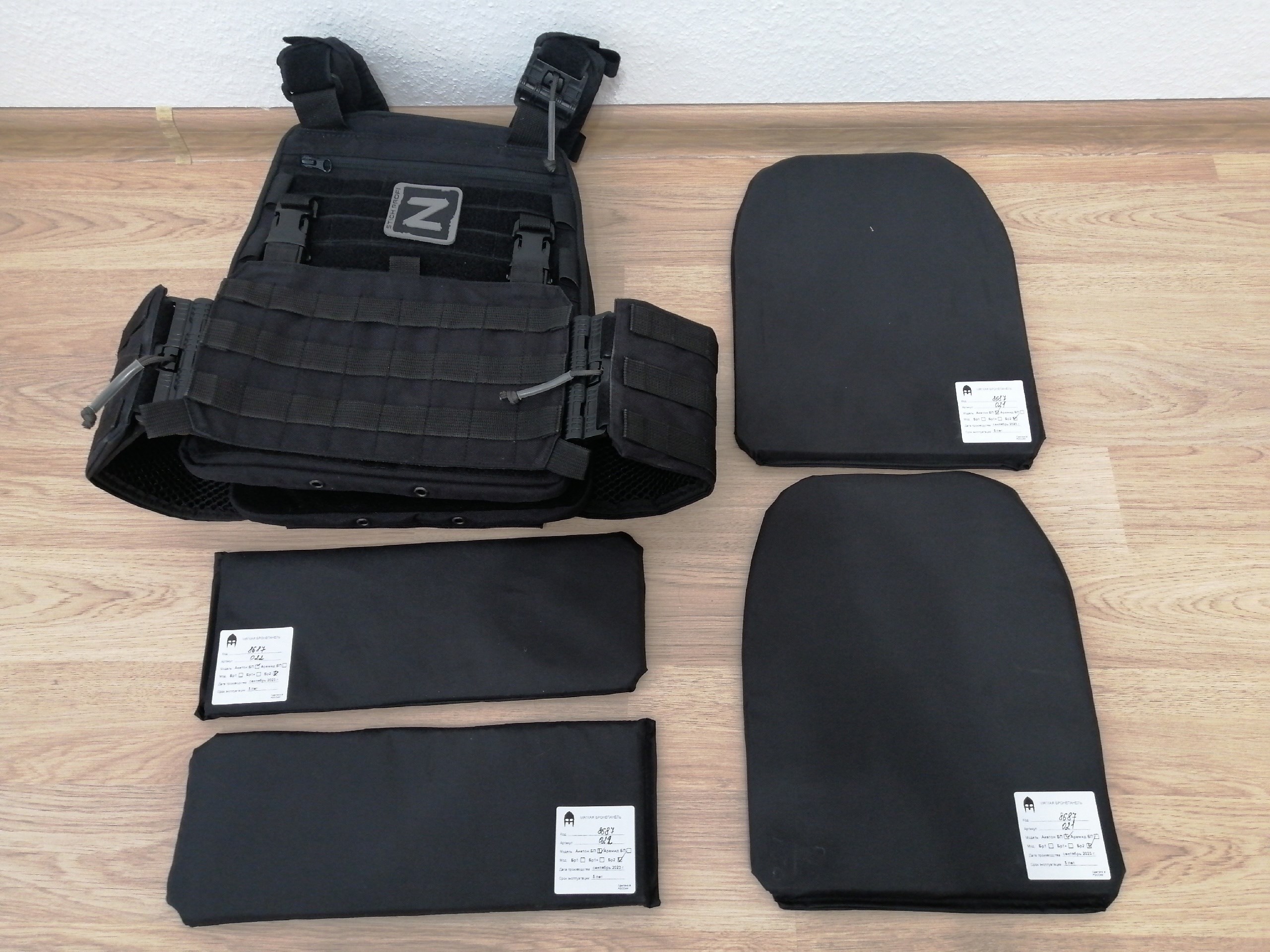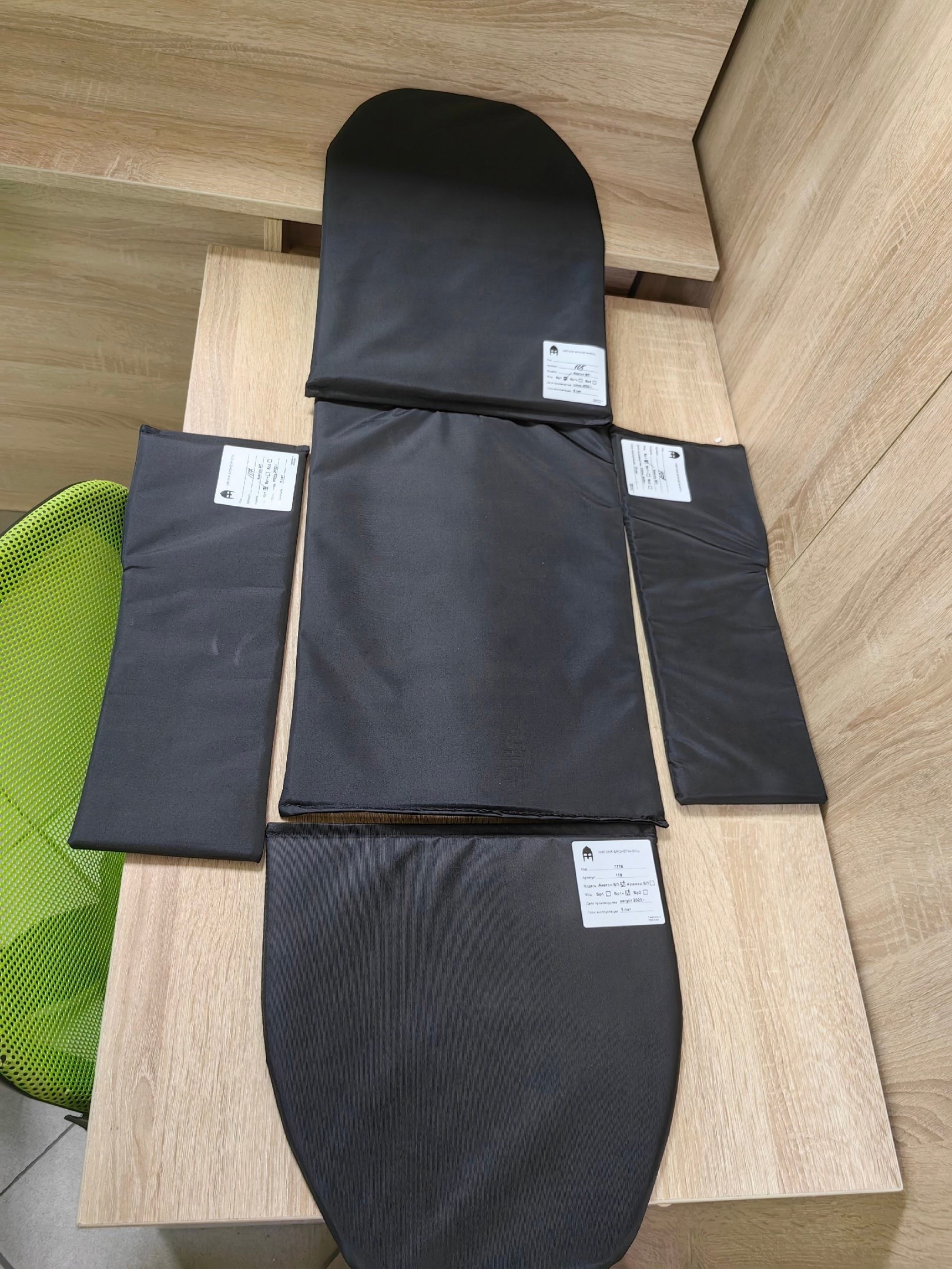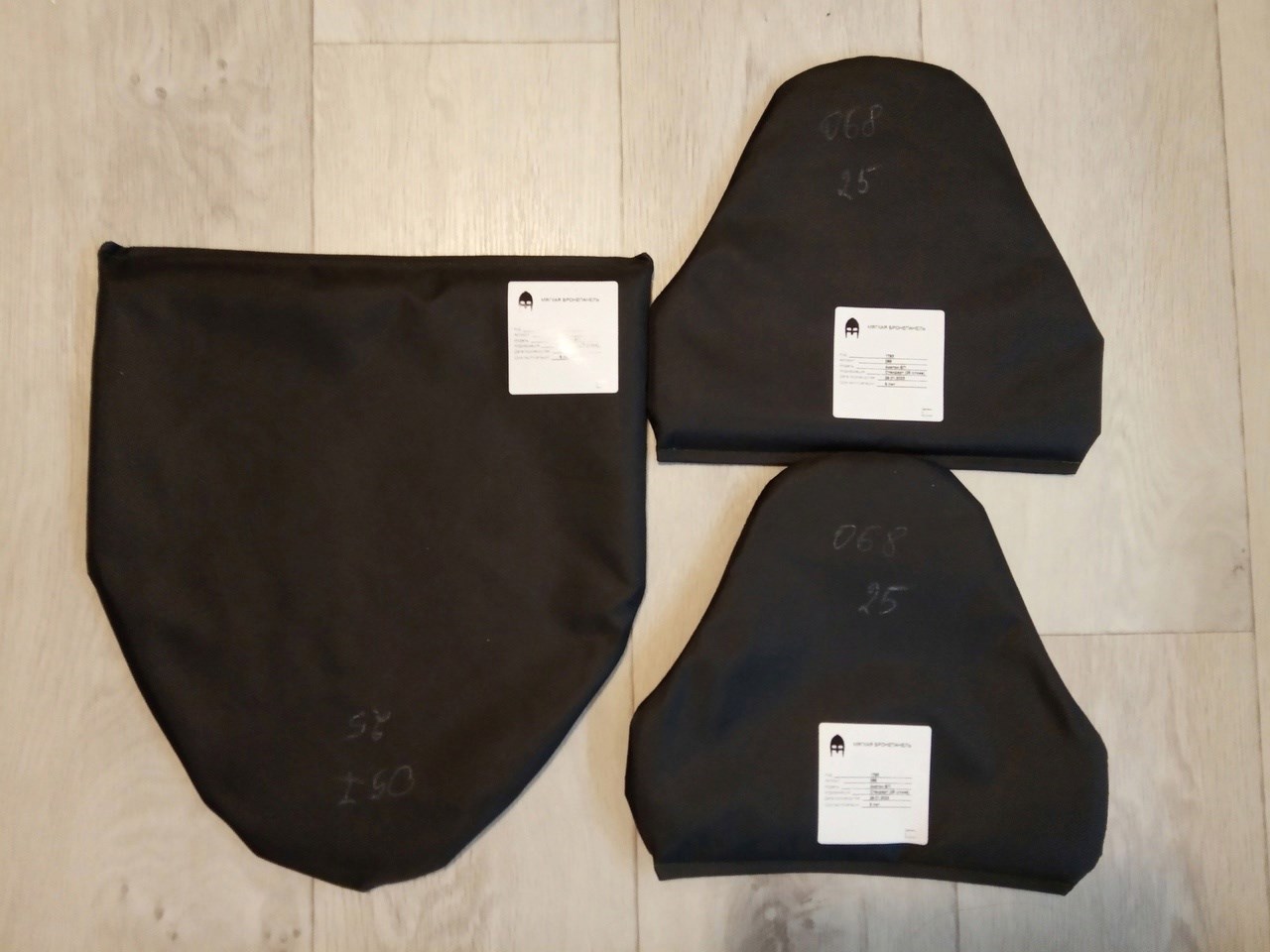 Был приобретён комплект защиты для жилета стрелец. Боковые части, к сожалению, не подошли, совместно с производителем было принято решение провести их отстрел и заменить на новые.