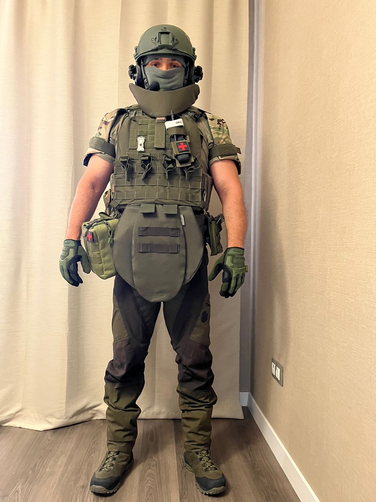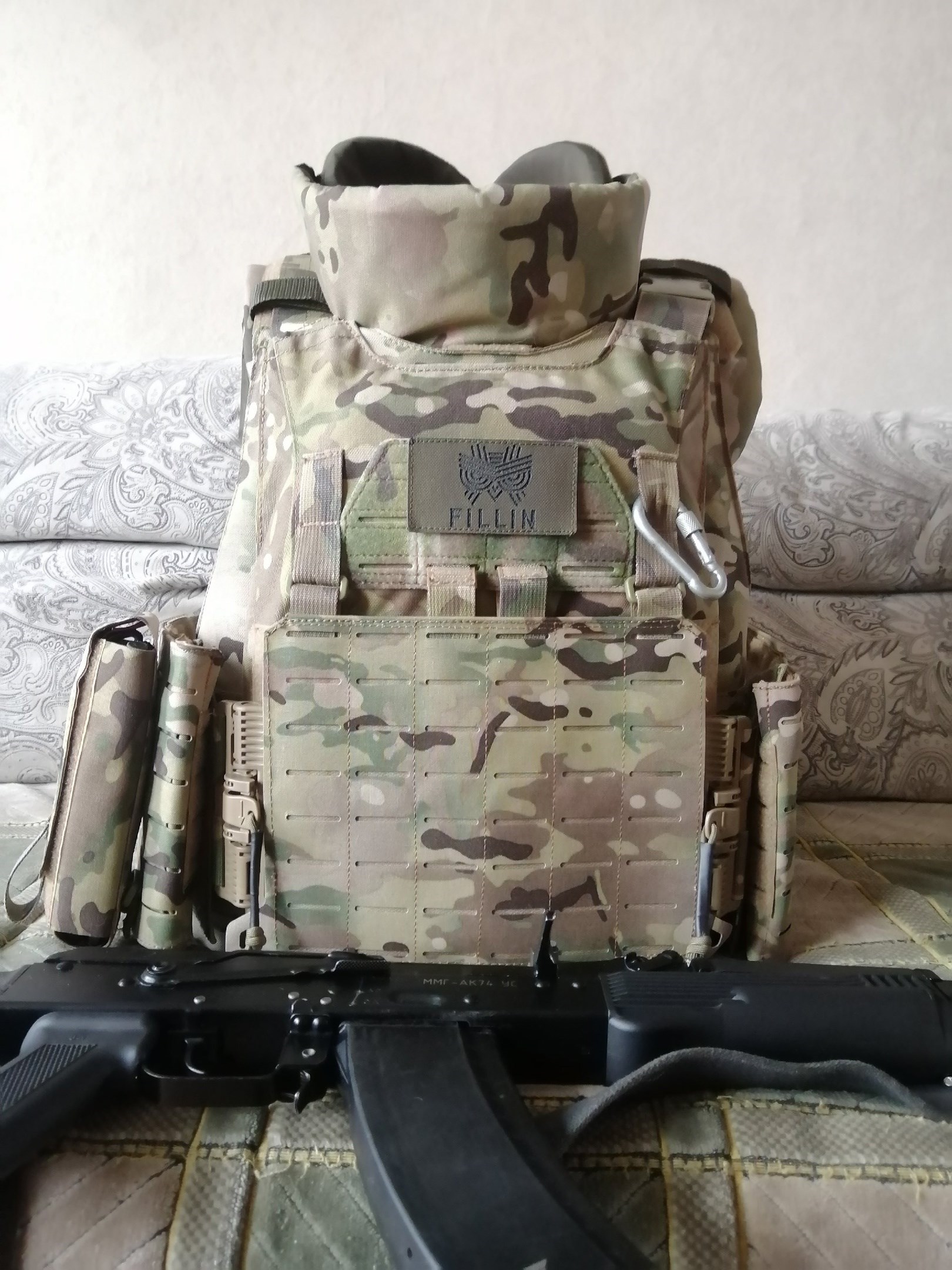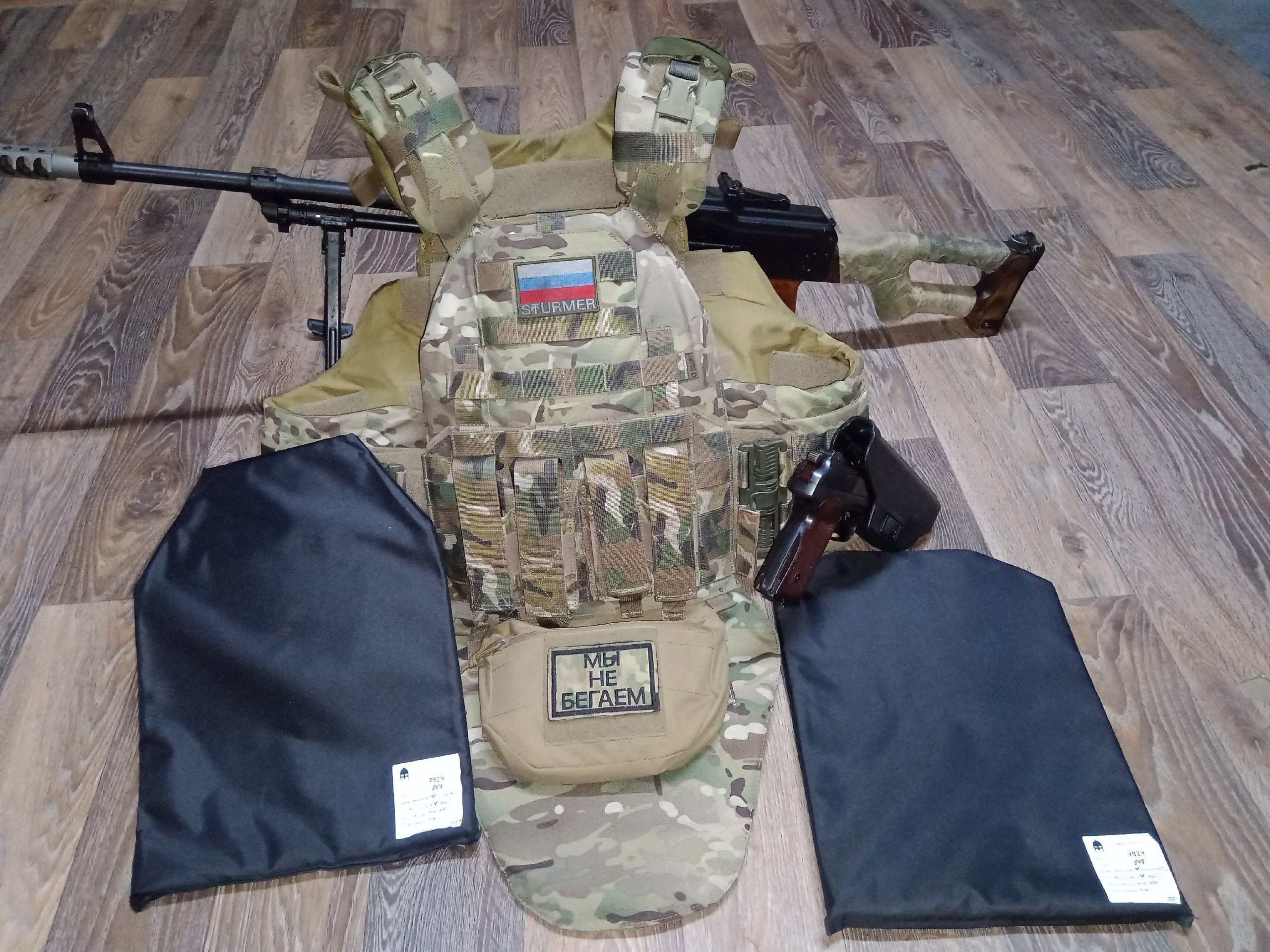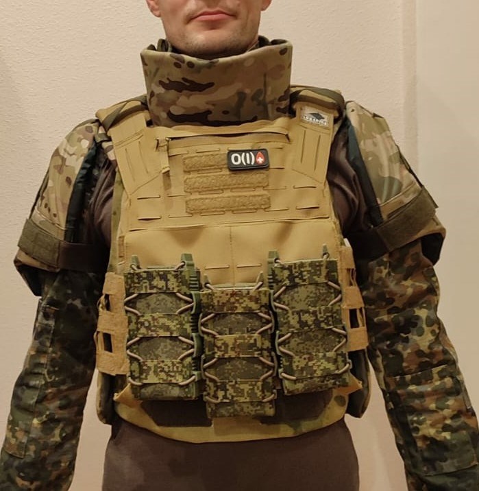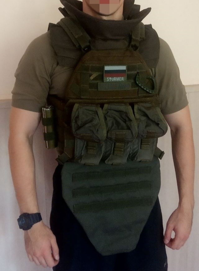 РоманЗдравствуйте, заказывал себе плитник Архангел 2 с полным комплектом противоосколочной СВМПЭ защитой, с защитой паха, плеч и шеи. Плюсом заказал некоторые подсумки.