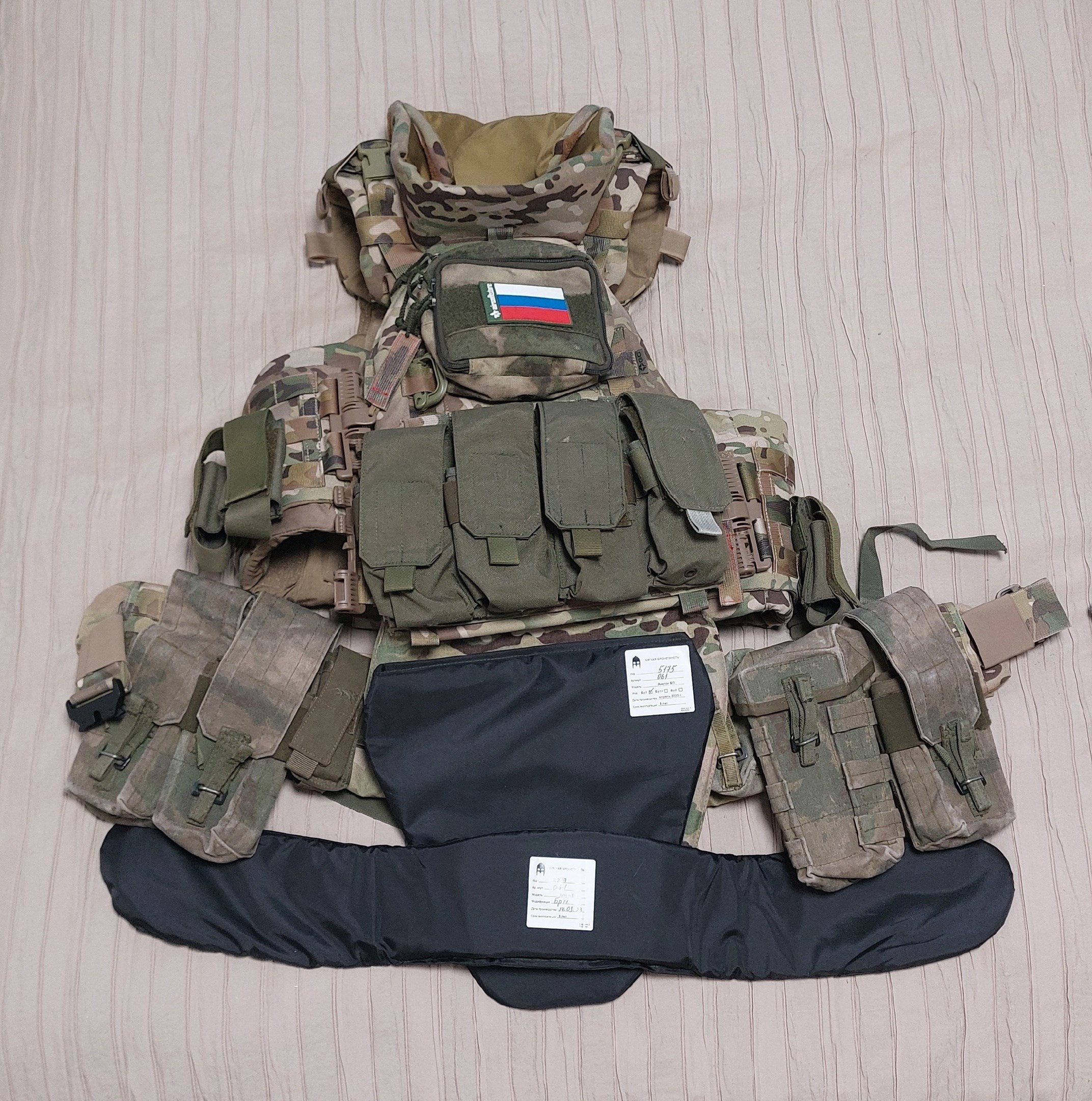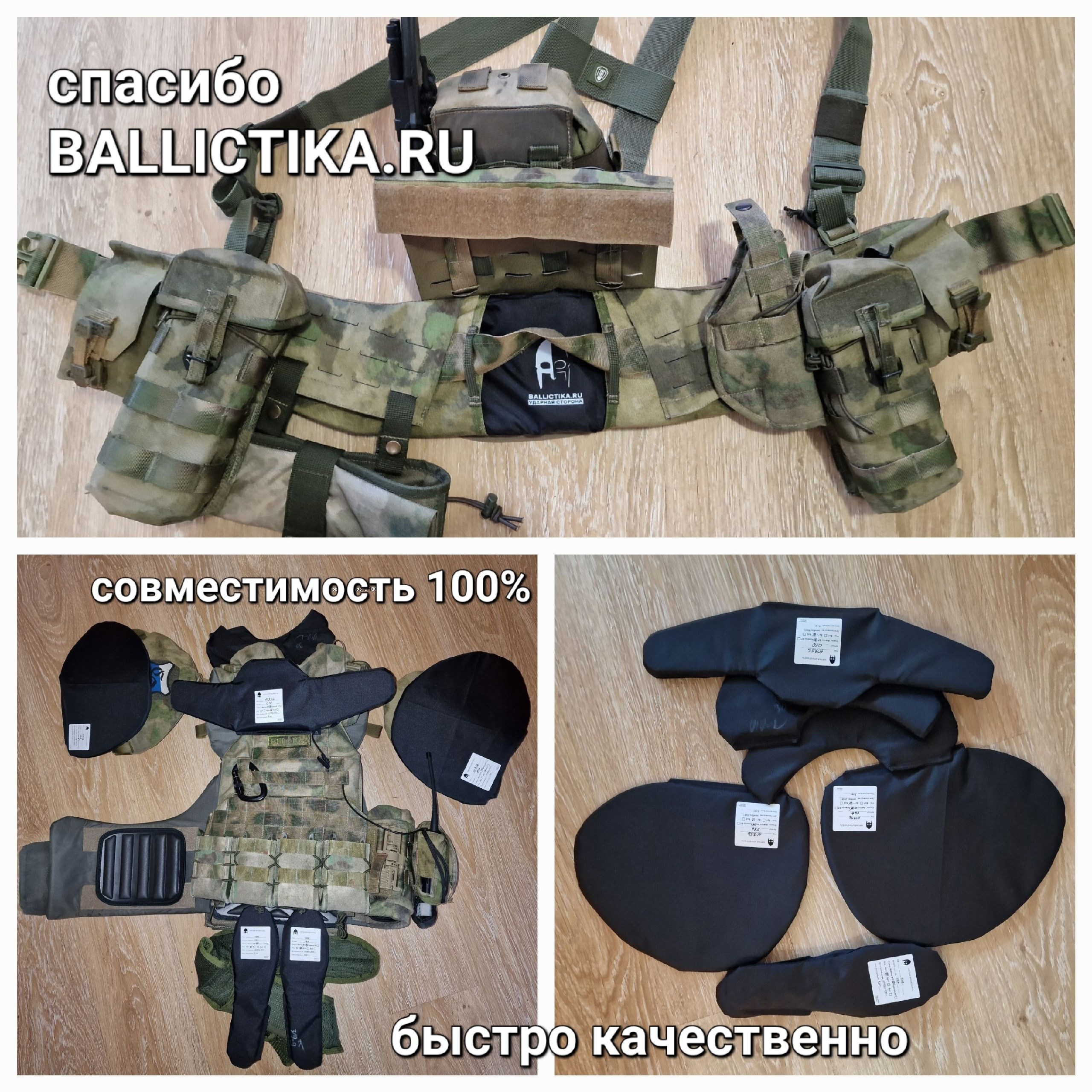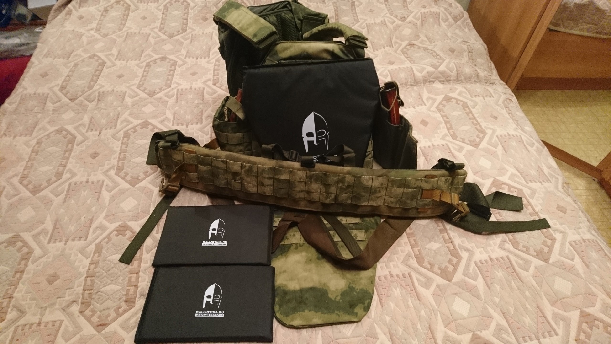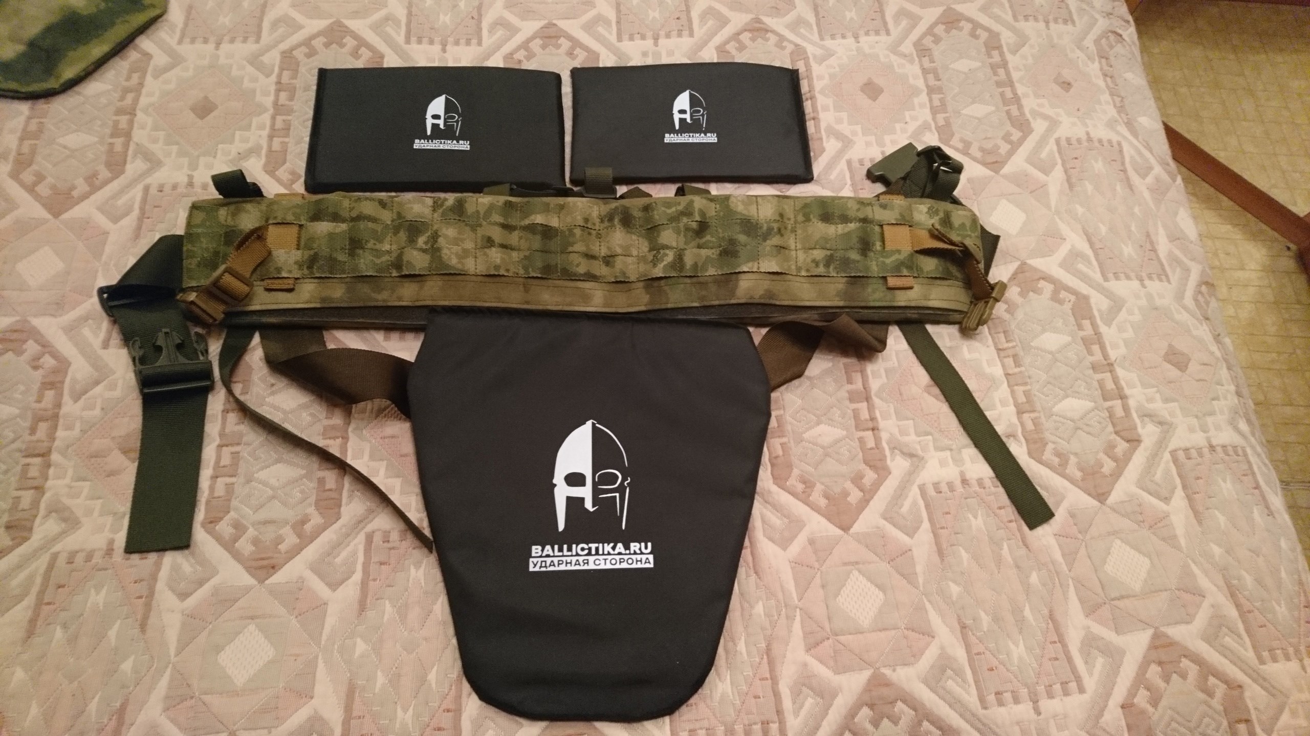 ВладЗдравствуйте! На фотографии все кроме подсумков для турникета и подсумка на защиту паха я приобрел у Вас. Так же приобрел комплект баллистики для бронежилета Панцирь 3.1 ССО (СВМПЭ Бр2, С2), баллистика в пояс боевой м3/м4 T-Armis (СВМПЭ Бр1+, С2), баллистика в напашник АРС (Арамид Бр1, С2). За качество баллистики Вашему коллективу огромное спасибо! Все подошло отлично! Срок изготовления быстрей чем было оговорено! Очень отзывчивые сотрудники!