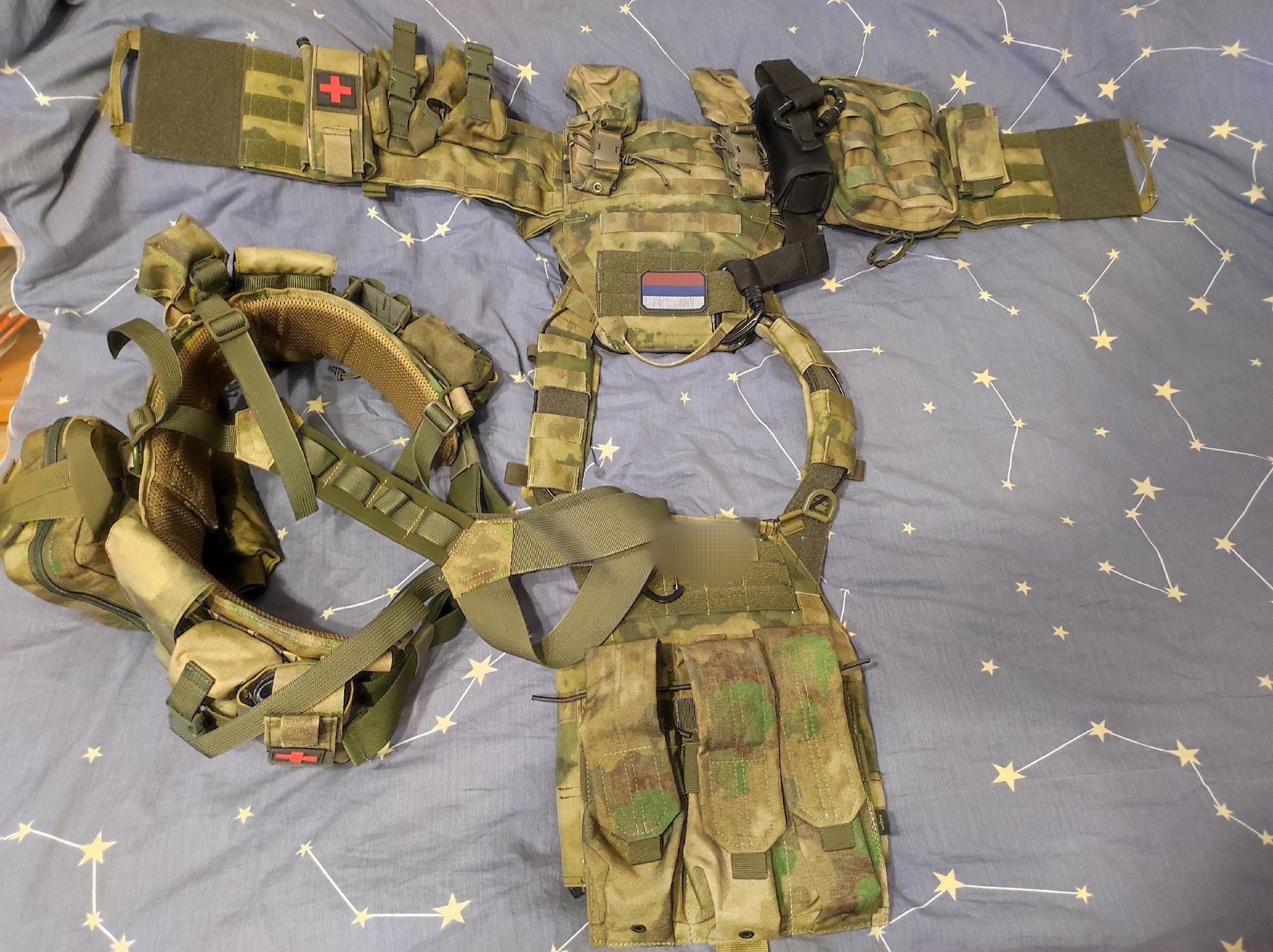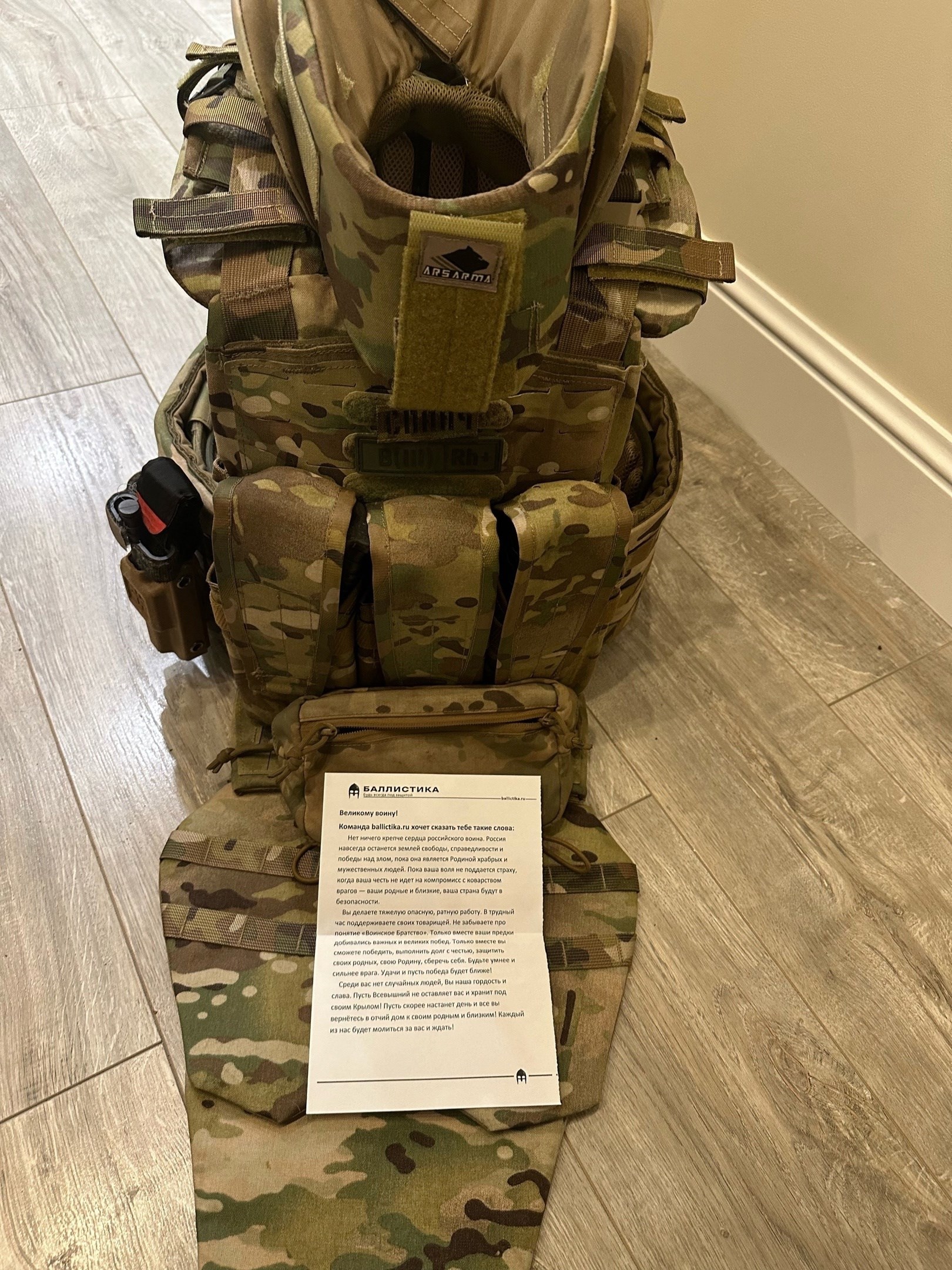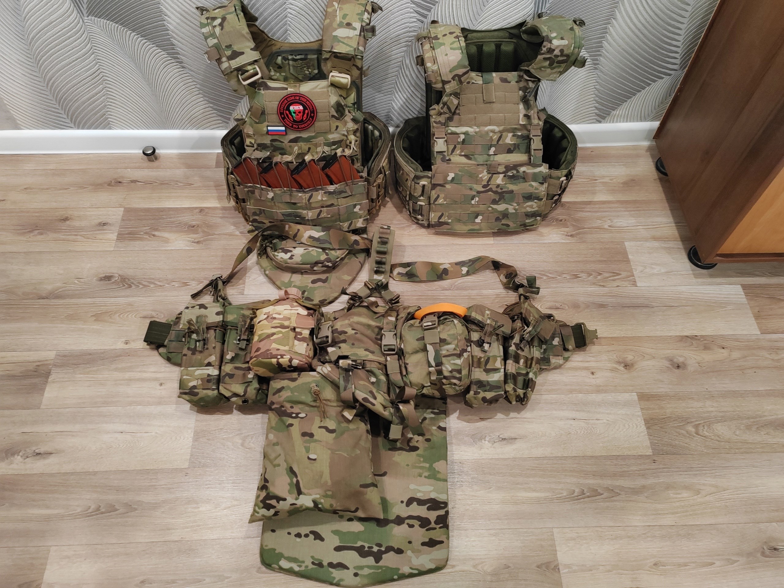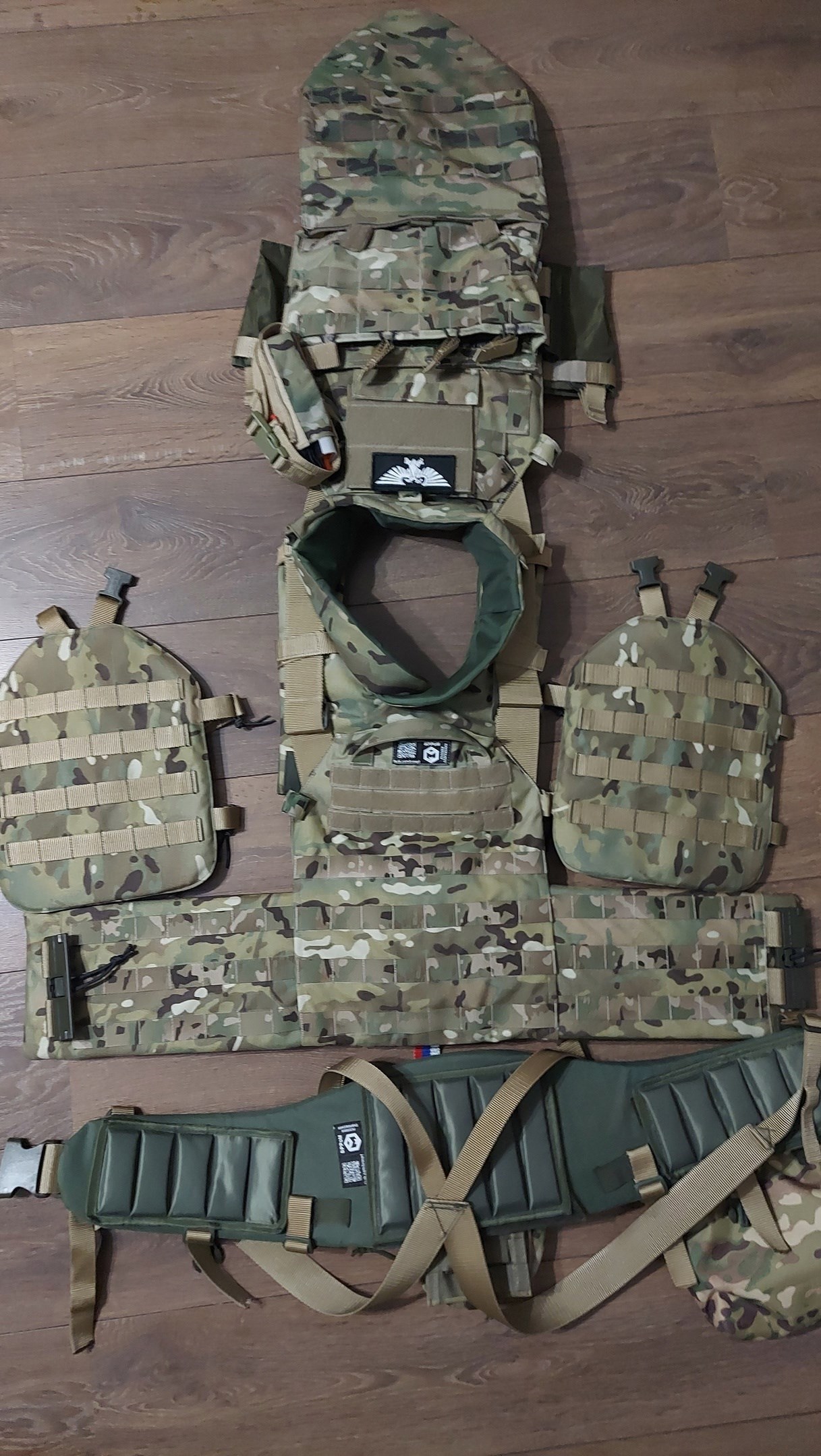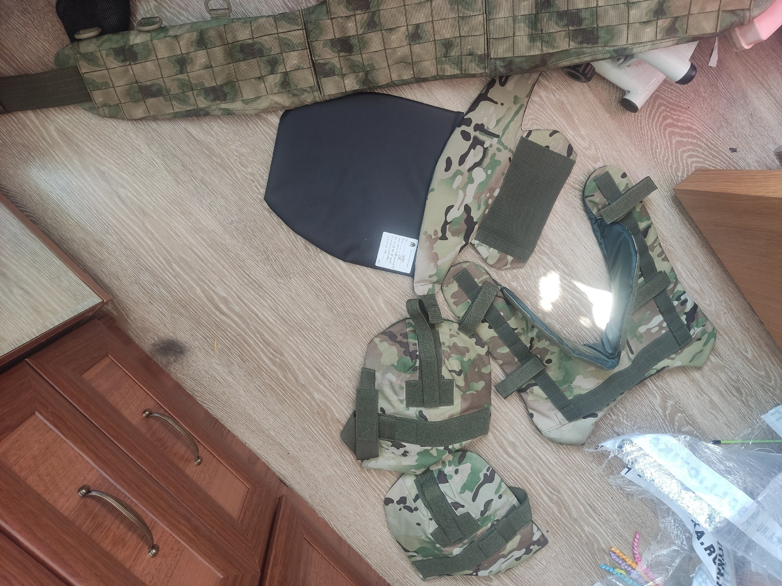 ВладЗдравствуйте! На фотографии все кроме подсумков для турникета и подсумка на защиту паха я приобрел у Вас. Так же приобрел комплект баллистики для бронежилета Панцирь 3.1 ССО (СВМПЭ Бр2, С2), баллистика в пояс боевой м3/м4 T-Armis (СВМПЭ Бр1+, С2), баллистика в напашник АРС (Арамид Бр1, С2). За качество баллистики Вашему коллективу огромное спасибо! Все подошло отлично! Срок изготовления быстрей чем было оговорено! Очень отзывчивые сотрудники!